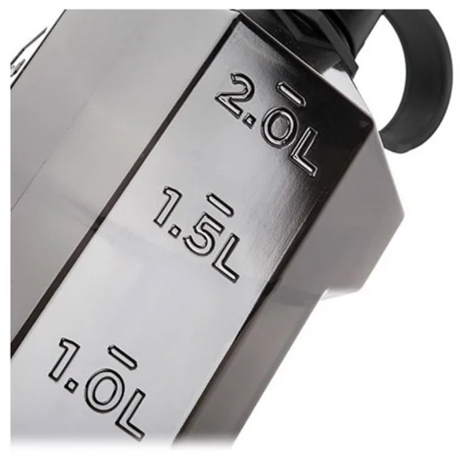 La bouteille elle-même indique une capacité de 2 litres, mais un total de 2,4 litres rentre dans la carafe !