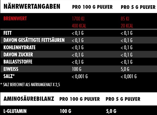 Prenez 5 à 10 g de glutamine, dissous dans n'importe quelle quantité de liquide, 1 à 2 fois par jour selon les besoins.