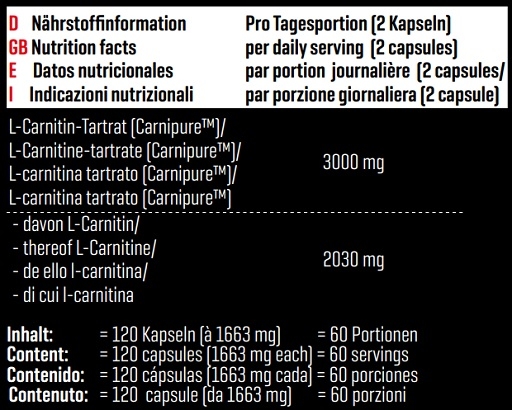 Enfin plus de puissance pour votre définition ou votre entraînement de silhouette ? Le soutien parfait vous attend dans des capsules pratiques et s'appelle : Carnipure™ 1500. Faites confiance à l’effet breveté de la L-carnitine premium et comptez sur la qualité à tous les niveaux. Perdre du poids grâce à une production d’énergie ciblée ? Nous avons porté les facteurs de réussite de votre régime hypocalorique et de votre entraînement intensif à un niveau supérieur : 1 500 mg de L-carnitine de haute qualité sont contenus dans chaque capsule pour vous aider à atteindre vos objectifs en tant que source d'énergie efficace. Facile à prendre et plus efficace – garanti !