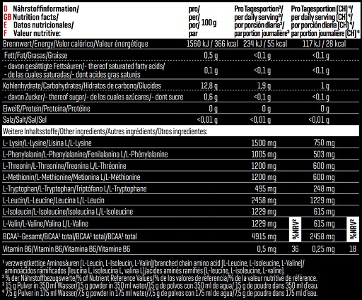 Chaque portion t’apporte 9 461 mg d’EAA, dont les fameux BCAA (leucine, isoleucine, valine), indispensables à la synthèse des protéines et à la lutte contre le catabolisme musculaire. Ton corps ne les fabrique pas, alors autant lui offrir le meilleur.