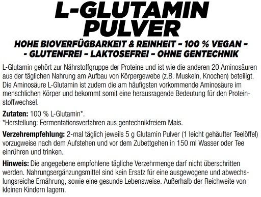 La poudre de L-Glutamine MySupps est totalement exempte de produits d'origine animale, de lactose, de colorants, de conservateurs, de sucre, d'édulcorants et d'autres additifs. Notre produit est donc adapté à la consommation de tous, sans aucun souci.