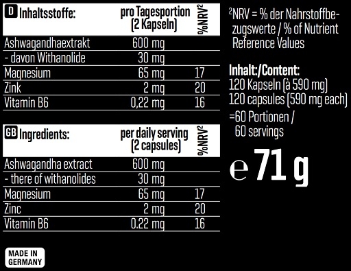 Le superaliment ultime pour vos meilleures performances a un nom : les capsules ASHWAGANDHA de BODY ATTACK. Nous avons pour vous de l'ASHWAGANDHA KSM-66 végétalien à haute dose avec 600 mg de matière première de marque unique par portion quotidienne ! La médecine ayurvédique s’appuie depuis longtemps sur le ginseng indien pour sa capacité à réduire le stress biologique. Pour développer vos muscles, vous avez besoin d’une récupération optimale, et vous l’obtenez grâce au magnésium, au zinc et à la vitamine B6 ajoutés contenus dans chacune de vos capsules ASHWAGANDHA !