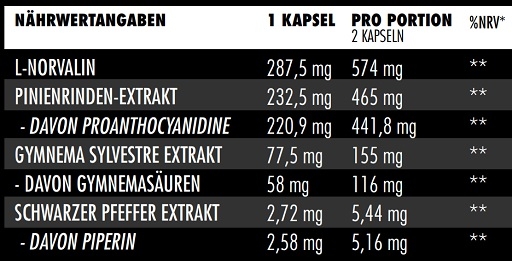 Étant donné que de nombreux culturistes ambitieux s'efforcent d'obtenir un apport élevé en glucides, en particulier avant, pendant et après l'entraînement, pour soutenir leurs performances d'entraînement, nous avons utilisé Gymnema Sylvestre dans le but de soutenir de manière synergique cette approche et de l'exploiter pour la pompe.