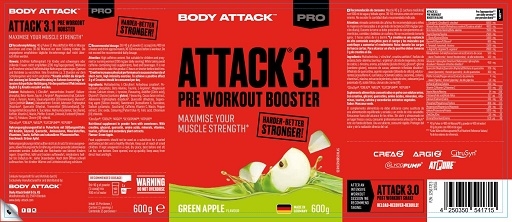 Shop / Nutrition sportive / Entraînements-Booster / Body Attack Pre Attack 3.1 600 g Cassis