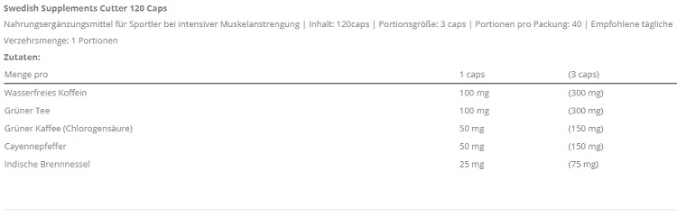Shop / Nutrition sportive / Entraînements-Booster / Swedish Supplements Cutter 120 gélules