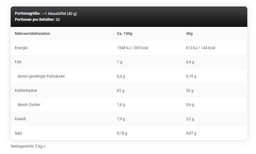 Crème de riz anabolique . Avec édulcorant. Poudre de fruits lyophilisés sélectionnés pour la préparation d'un repas glucidique riche en énergie, destiné aux adultes ayant pratiqué un exercice physique très intense et/ou prolongé ayant entraîné une fatigue musculaire et un épuisement des réserves de glycogène des muscles squelettiques. *Les glucides contribuent au rétablissement d'une fonction musculaire normale (contraction) après un exercice physique très intense et/ou prolongé ayant entraîné une fatigue musculaire et un épuisement des réserves de glycogène des muscles squelettiques. L'effet bénéfique est obtenu par la consommation de glucides de toutes sources, à raison de 4 g par kg de poids corporel, dans les 4 premières heures et au plus tard 6 heures après un exercice physique très intense et/ou prolongé ayant entraîné une fatigue musculaire et un épuisement des réserves de glycogène des muscles squelettiques.