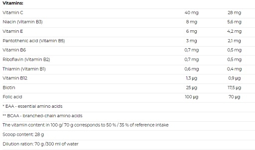 Mélanger une portion de 70 g avec 300 ml d'eau. Il est recommandé de consommer immédiatement après l'entraînement. À consommer au maximum deux fois par jour, en tenant compte de votre alimentation. Ne pas dépasser la dose recommandée.