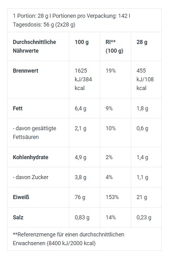Le produit est disponible dans une nouvelle recette sans sucre ajouté (sauf Biscuit Noir), mais avec des enzymes bromélaïnes. Les enzymes bromélaïnes sont des enzymes dégradant les protéines qui contribuent à une dégradation plus efficace des protéines. En plus des nouvelles fonctionnalités, le produit est toujours sans gluten et sans huile de palme.
