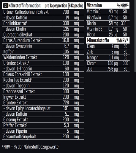 Brûlez ! Votre prochain entraînement brûle-graisses peut commencer ! Avec 200 mg de caféine* dans votre dose quotidienne de LIPO 100, vous êtes parfaitement préparé pour la bataille du fer ! D'où provient la caféine de haute qualité de vos Power Caps ? Un mélange de diverses substances, dont du guarana et de l'extrait de thé vert, constitue la base de votre coup de fouet caféiné ! Attendez-vous également à une forte dose de niacine (vitamine B3), qui combat la fatigue*** ! Somnolence ? Adieu ! Concentration ? Olé !