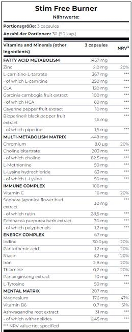 Grâce à ses 5 complexes stimulant le métabolisme, Stim Free Burner est idéal pour le contrôle du poids :