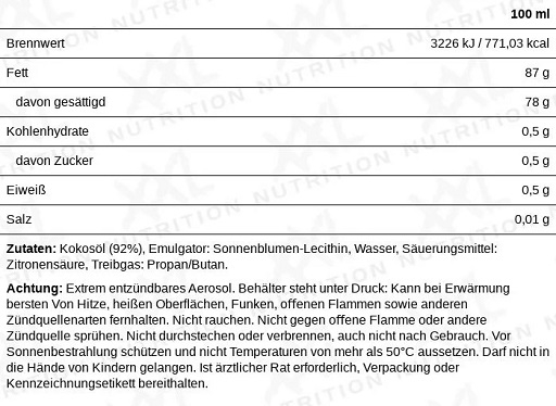 Une grande partie de la population utilise encore des huiles végétales à forte teneur en acides gras insaturés pour frire ou rôtir. En plus de la forte teneur en calories supplémentaires transférées aux aliments préparés, la chaleur élevée provoque la décomposition des acides gras polyinsaturés instables en acides gras trans, qui sont extrêmement nocifs pour la santé. Perfect Cooking Spray représente désormais l'alternative parfaite à ces deux problèmes et convient donc parfaitement au régime alimentaire de tout athlète soucieux de sa santé et ambitieux. D'une part, Perfect Cooking Spray est un produit pratiquement sans calories, mais d'autre part, des variantes d'huile et de graisse sont utilisées qui sont beaucoup moins sensibles à la chaleur. Une comparaison des calories consommées par une cuillère à café d’huile et de margarine/beurre montre que Perfect Cooking Spray peut économiser plus de 100 calories ou plus par préparation. Un flacon permet jusqu'à 740 applications, ce qui rend le rapport qualité-prix presque imbattable.