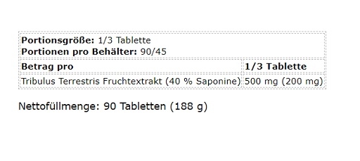 ingrédients : extrait de fruit de tribulus terrestris L.