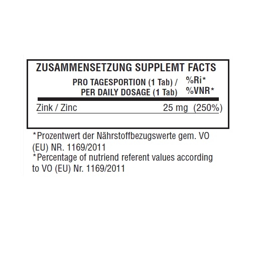 Chaque comprimé contient 50 mg de zinc de haute qualité.