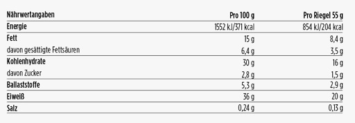 Protéines de lait, chocolat au lait 24 % (édulcorant : maltitol, beurre de cacao, lait entier en poudre, pâte de cacao, émulsifiant : lécithine de soja, arômes), humectant : glycérine, isomaltooligosaccharides, peptides de collagène, eau, chips de soja (isolat de protéines de soja, cacao, amidon de tapioca), graisse de palme, arôme, édulcorant, sucralose, acelsulfame K