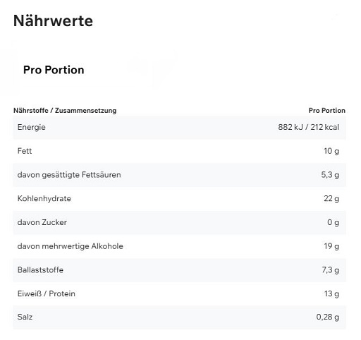 Chocolat avec édulcorant 27% (pâte de cacao, édulcorant (maltitol), beurre de cacao, émulsifiant (lécithines (tournesol, colza)), arôme naturel de vanille), protéines végétales (protéines de soja, protéines de pois, protéines de riz), humectant