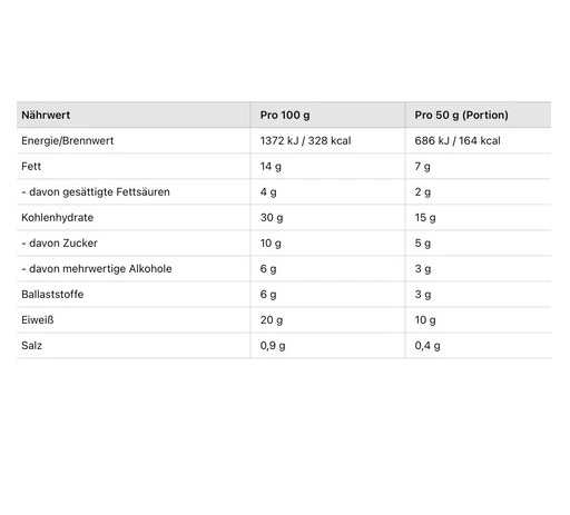 Farine de blé, huile végétale (huile de tournesol, huile de palme), protéines de lactosérum, œufs, inuline, lait écrémé en poudre, humectant (glycérol), miel (4,7%), épaississant (polydextrose), édulcorant (sorbitol), dextrose, amidon modifié, émulsifiant (lécithine de tournesol), sel de table, agents de charge (bicarbonate de sodium, phosphates de sodium), épaississant (alginate de sodium), conservateur (sorbate de potassium), arôme vanille (0,86%).