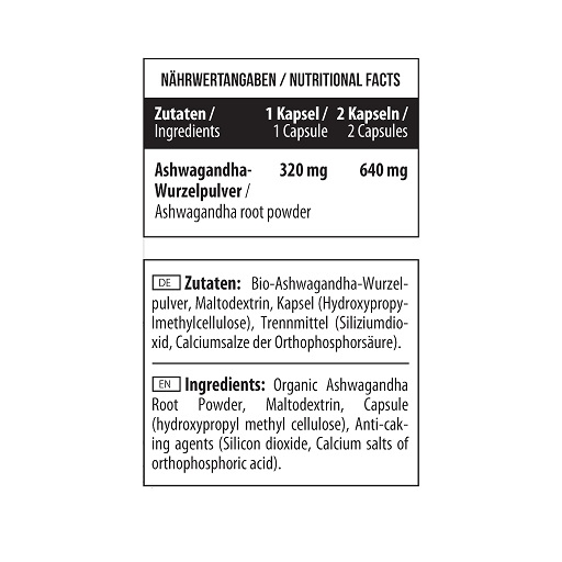 La dose quotidienne recommandée apporte 640 mg d'extrait d'Ashwagandha.