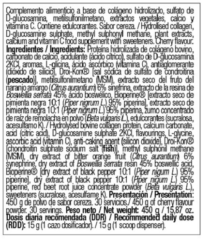 1,5 g de glucosamine et 667 mg de Droi Kon® par portion pour renforcer et réparer les cartilages fragilisés par l'exercice intense et/ou l'âge. Évitez à tout prix la détérioration osseuse, sinon vous le regretterez toute votre vie !